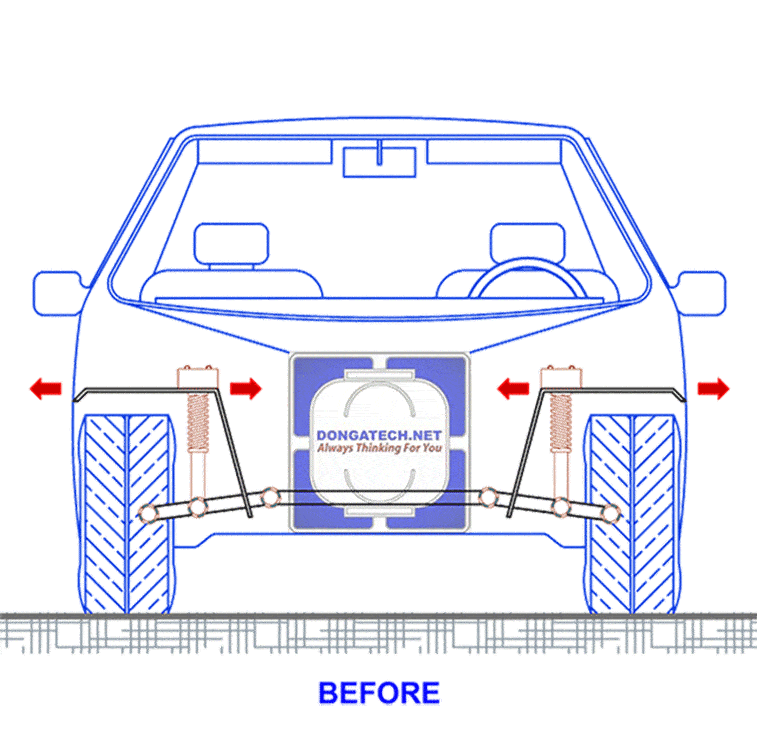 - Khi chạy xe, tác động từ mặt đường thông qua lốp xe đến hệ thống treo và tác động đến trụ treo của khung xe. Mặt đường gồ ghề hay xe chạy tốc độ cao làm hai trụ treo luôn dao động. Dù rất nhỏ nhưng các dao động này được công hưởng tăng lên bởi hệ thống khung gầm và ảnh hưởng đến hệ thống lái, cảm giác lái xe. Dễ nhận thấy hiện tượng trượt bánh/trượt lái khi qua đường gồ ghề hay gờ giảm tốc.
