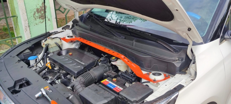 Thanh Cân Bằng - Front Strut Bar nối 2 trụ trước của xe KIA SELTOS; lúc này toàn bộ phía đầu xe gồm 2 trụ, khung máy tạo thành một mảng cứng giúp xe chạy ổn định với tốc độ cao.