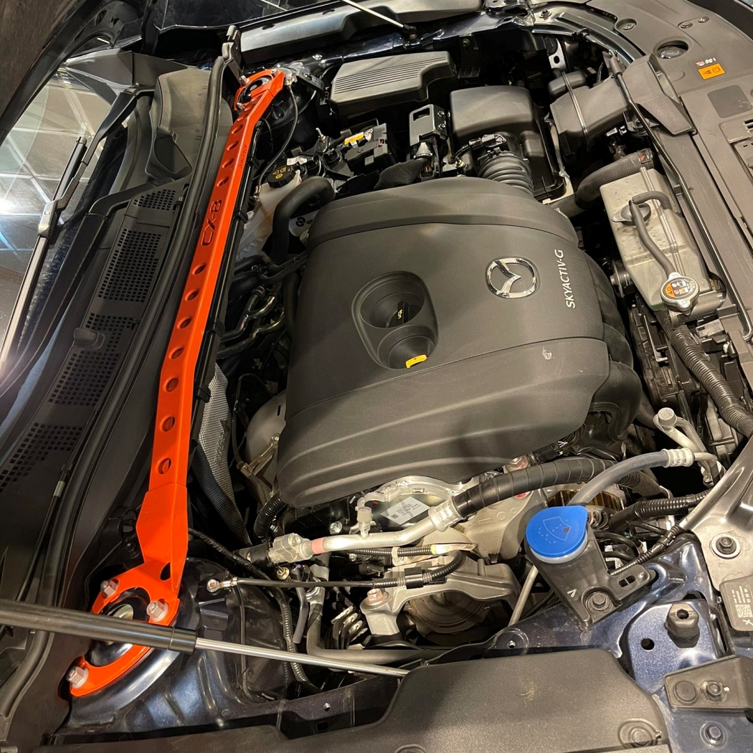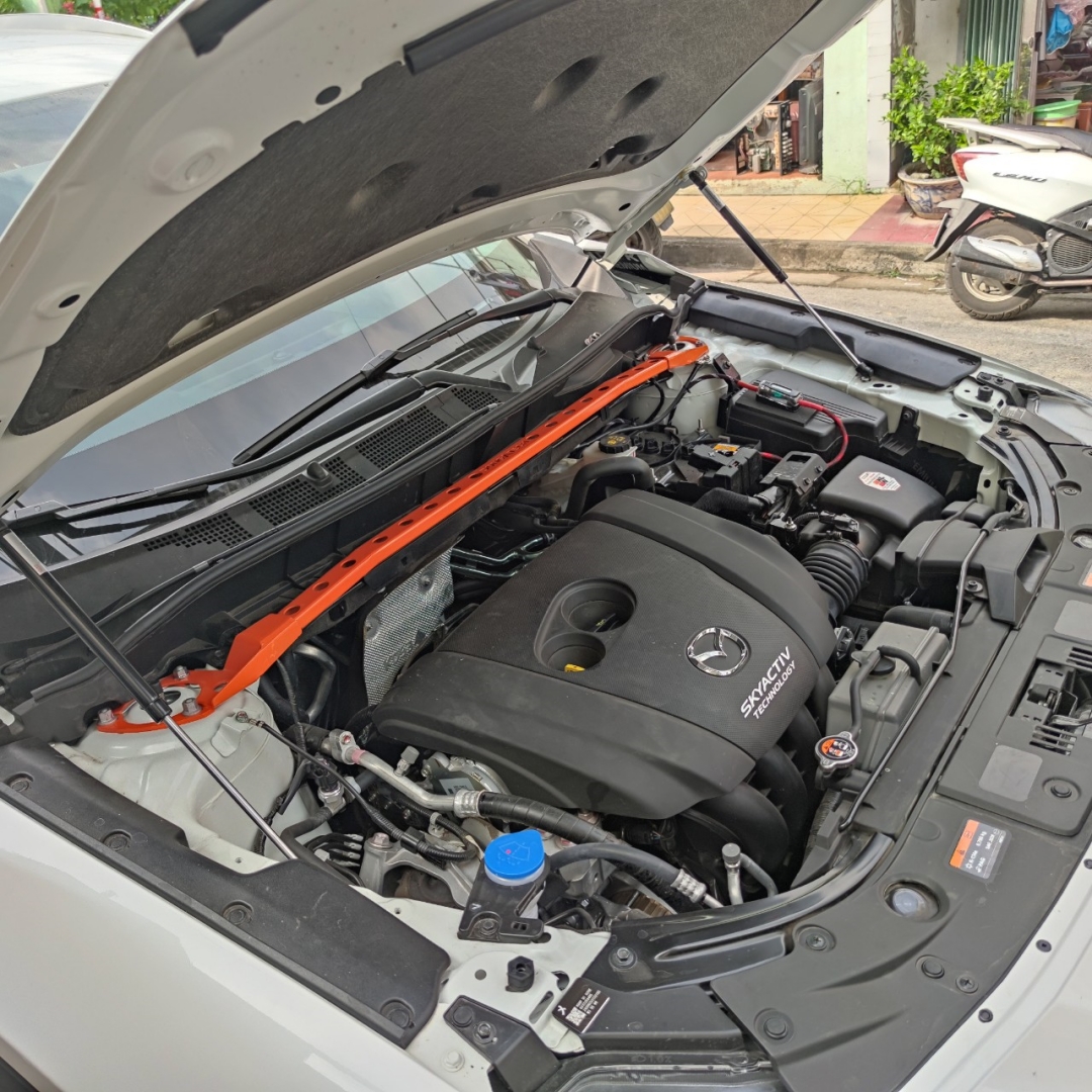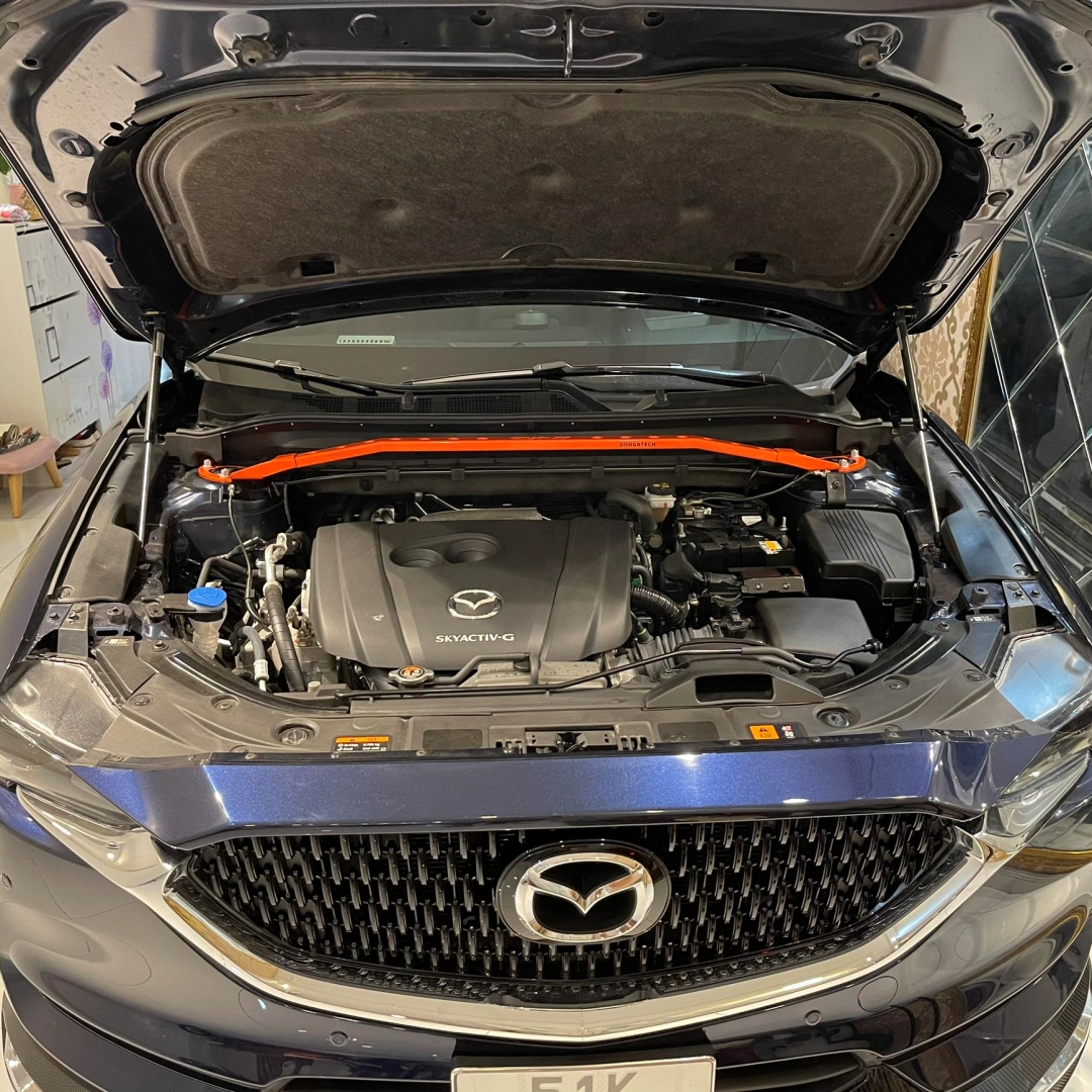 Thanh Cân Bằng - Front Strut Bar nối 2 trụ trước của xe Mazda CX-8; lúc này toàn bộ phía đầu xe gồm 2 trụ, khung máy tạo thành một mảng cứng giúp xe chạy ổn định với tốc độ cao.